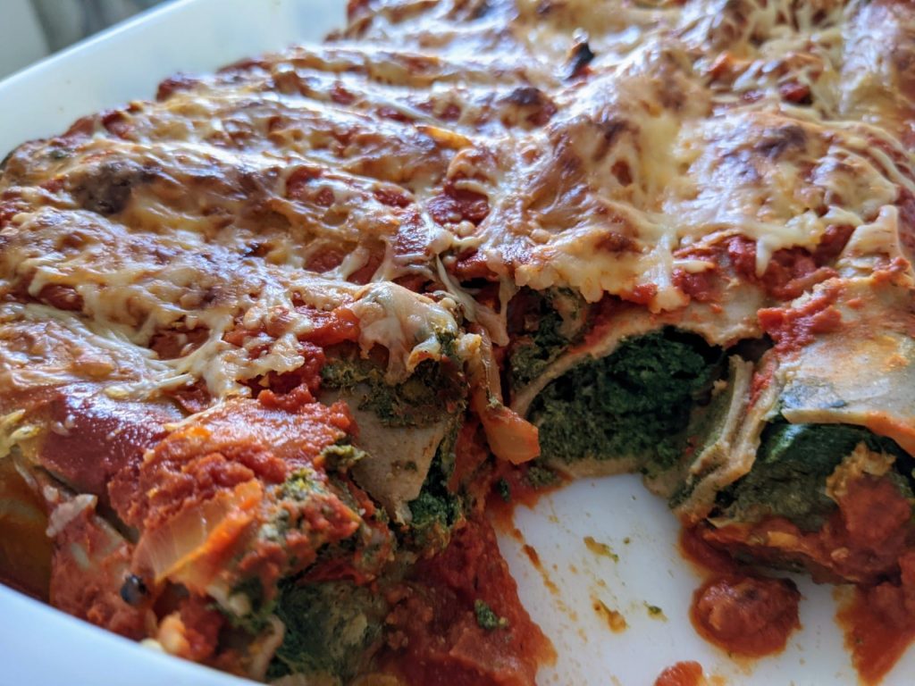 Cannelloni aux épinards et à la ricotta. Un bon plat familial comme je les aime. Un plat qui vaut la peine qu’on passe un peu de temps dessus parce que derrière tu fais pas à manger deux ou trois fois.